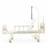 Каркас представлен холоднокатаной сталью, покрытой защитным эмалевым составом. Подвижные секции меняют положение по средствам червячного привода. Боковые поручни опускаются до уровня ложа. Торцевые спинки полностью снимаются. В основании кровати предусмотрена съемная полка для установки санитарного устройства.