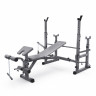 Силовая регулируемая скамья UNIX Fit BENCH 200R станет вашим надежным помощником на пути к спортивным победам! Универсальный тренажер разработан для спортсменов любого уровня подготовки. Вы превратите свой дом в настоящий тренажерный зал и достигните новых высот в фитнесе-целях! Тренировки на регулируемой силовой скамье BENCH 200R способствуют развитию мышечной массы, укреплению пресса, мышц спины, груди и рук. Благодаря своей универсальности многофункциональная скамья позволит эффективно прорабатывать ягодицы и ноги. Вы разовьете силу воли, выносливость, сможете похудеть и сформировать идеальное подтянутое тело, не выходя из дома. С помощью спортивного тренажера UNIX Fit BENCH 200R можно выполнять множество упражнений: - различные жимы; - пуловер с гантелями; - подъем гантелей; - разгибание трицепса в положении лежа; - сгибание с усилием; - скручивания. Конструкция скамьи для жима и пресса разработана так, чтобы совместить компактные размеры 130 x 54,6 x 95 см в рабочем состоянии, с надежностью и прочностью изделия, ведь тренажер выполнен из усиленного стального профиля и способен выдержать общую нагрузку до 300 кг. Устойчивая конструкция позволяет выполнять самые интенсивные упражнения совершенно безопасно. Универсальная скамья прекрасно впишется в домашнее пространство. Напольная конструкция не требует крепления к поверхности, а благодаря транспортировочным колесикам ее можно переместить в любое удобное вам место. Силовую скамью легко адаптировать в соответствии с фитнес-целями пользователя. Наклон спинки регулируется в 7-ти уровнях от 90 до -14°, что позволяет подобрать нужную позицию для тренировки. Возможно установить отрицательный угол наклона и проработать нижнюю часть грудных мышц. Размер спинки: 80 х 32/24 х 5,5 см. Высота сиденья силовой скамьи регулируется в 4 положениях. Правильная высота обеспечивает удобное положение тела во время занятий, снижая риск травм и дискомфорта. Благодаря регулировке высоты скамью можно настроить под рост спортсмена, а также разнообразить упражнения. Размер сиденья: 33 х 30/20 х 5,5 см. Каждый элемент многофункционального тренажера продуман с учетом всех деталей. Обивка из ПВХ высокого качества не скользит и не впитывает влагу, двойная строчка усиливает шов, что делает элементы тренажера износостойкими. Ножки силовой скамьи оснащены специальными накладками, которые защищают напольное покрытие во время тренировок и не дают скользить. Благодаря использованию высококачественных материалов тренажер станет вашим надежным спутником на долгие годы. Чтобы еще больше разнообразить тренировки и создать собственный спортивный зал, рекомендуем вместе с скамьей использовать Машину Смита UNIX Fit SMITH STRENGHT 180. Тренируйтесь вместе с UNIX FIT!